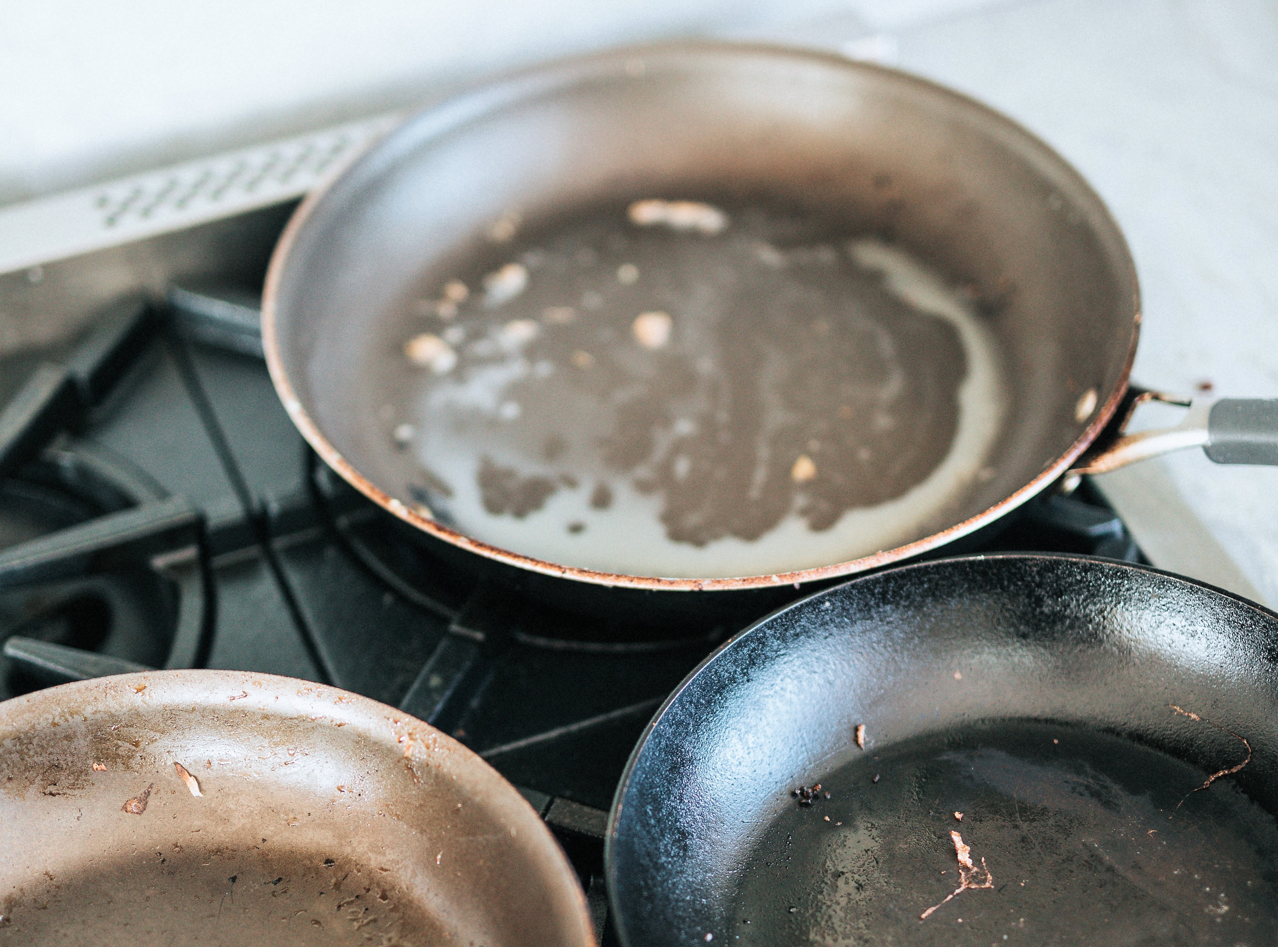 ① 요리하고 나서 후라이팬이나 그릇에 약간의 기름이 남아 있다면 먼저 키친타올이나 휴지로 닦아내주세요