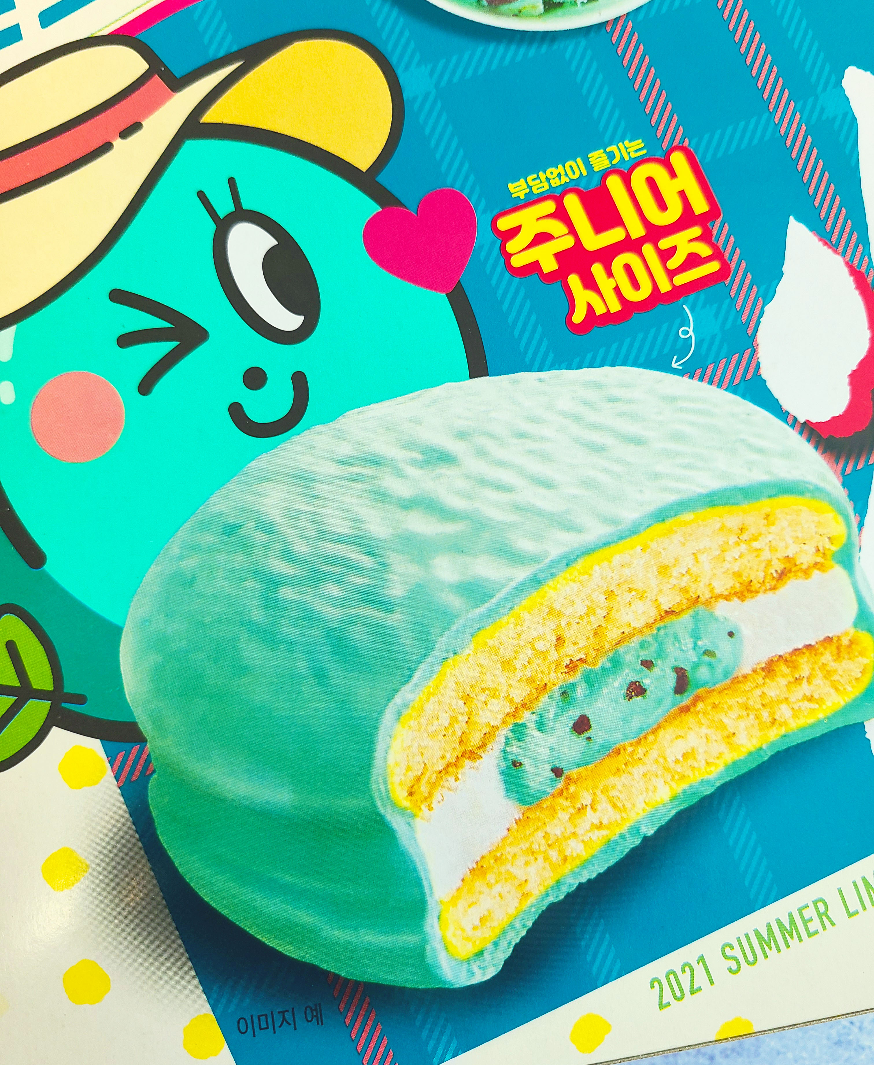 겉은 민트초코로 코팅되어 있고 안에는 마시멜로우와 민트크림이 들어있습니다.