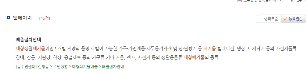 2. 검색창에 '대형폐기물' '대형폐기물 신고'를 검색합니다