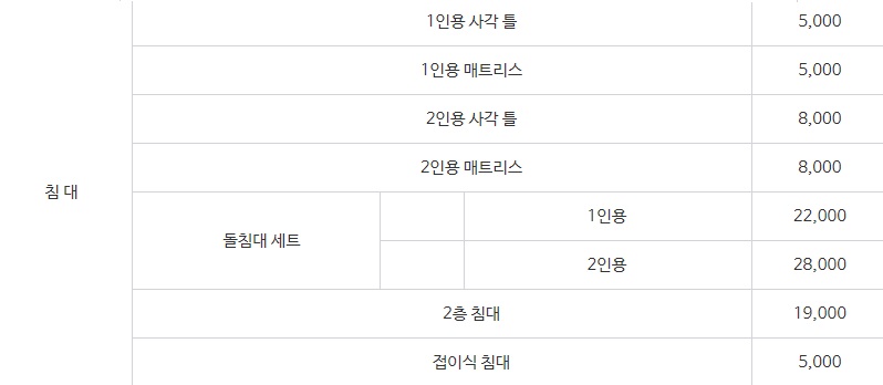 <수원시청의 대형폐기물 스티커 판매 안내자료> 입니다. 가격을 침대 종류에 따라 자세하게 매겨놓았네요. 1인용 매트리스 버리는 비용은 5,000원이고 돌침대 세트(1인용)의 경우 22,000원입니다.