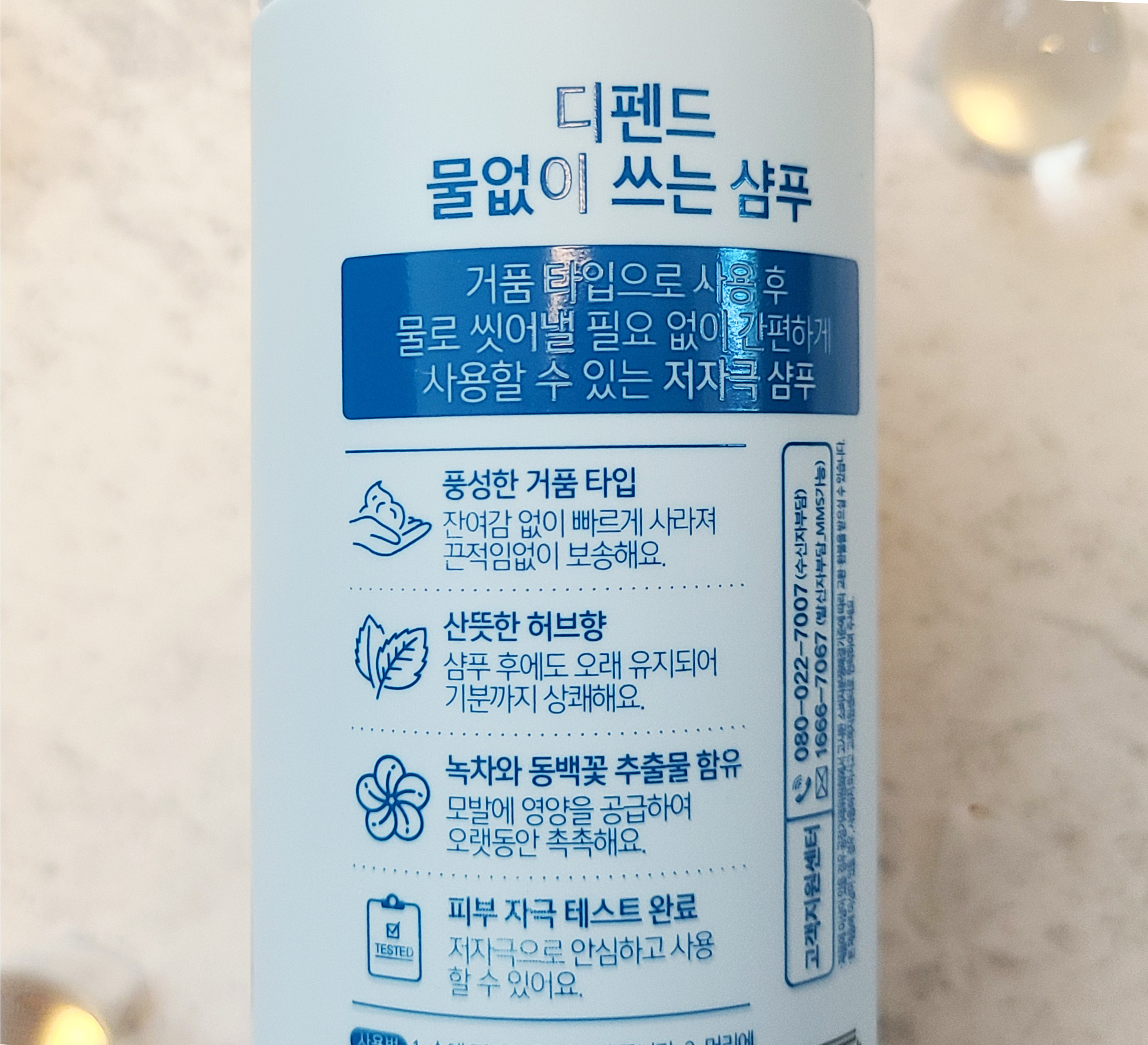 물 없이 감는 샴푸도 종류가 여러 가지인데 디펜드에서 나온 제품은 실제 머리를 감는 것과 과정이 흡사했어요. 물로 헹구지만 않았지 머리에 거품내서 샴푸 하는 과정은 똑같습니다.