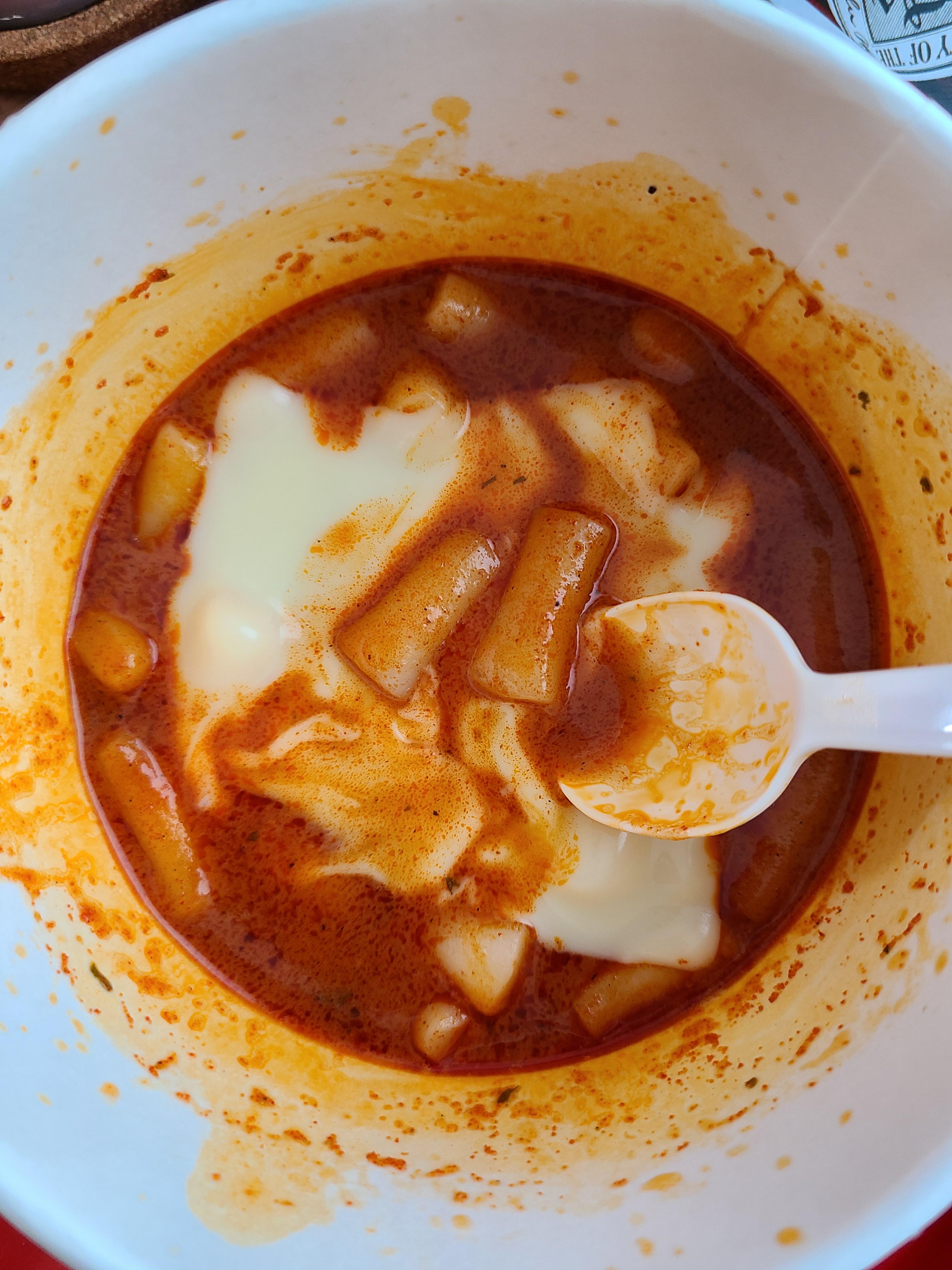 치즈 넣은 떡볶이 느끼해서 별로 안 좋아하는데 요건 치즈 넣어 먹으니 고소하고 맛있었어요