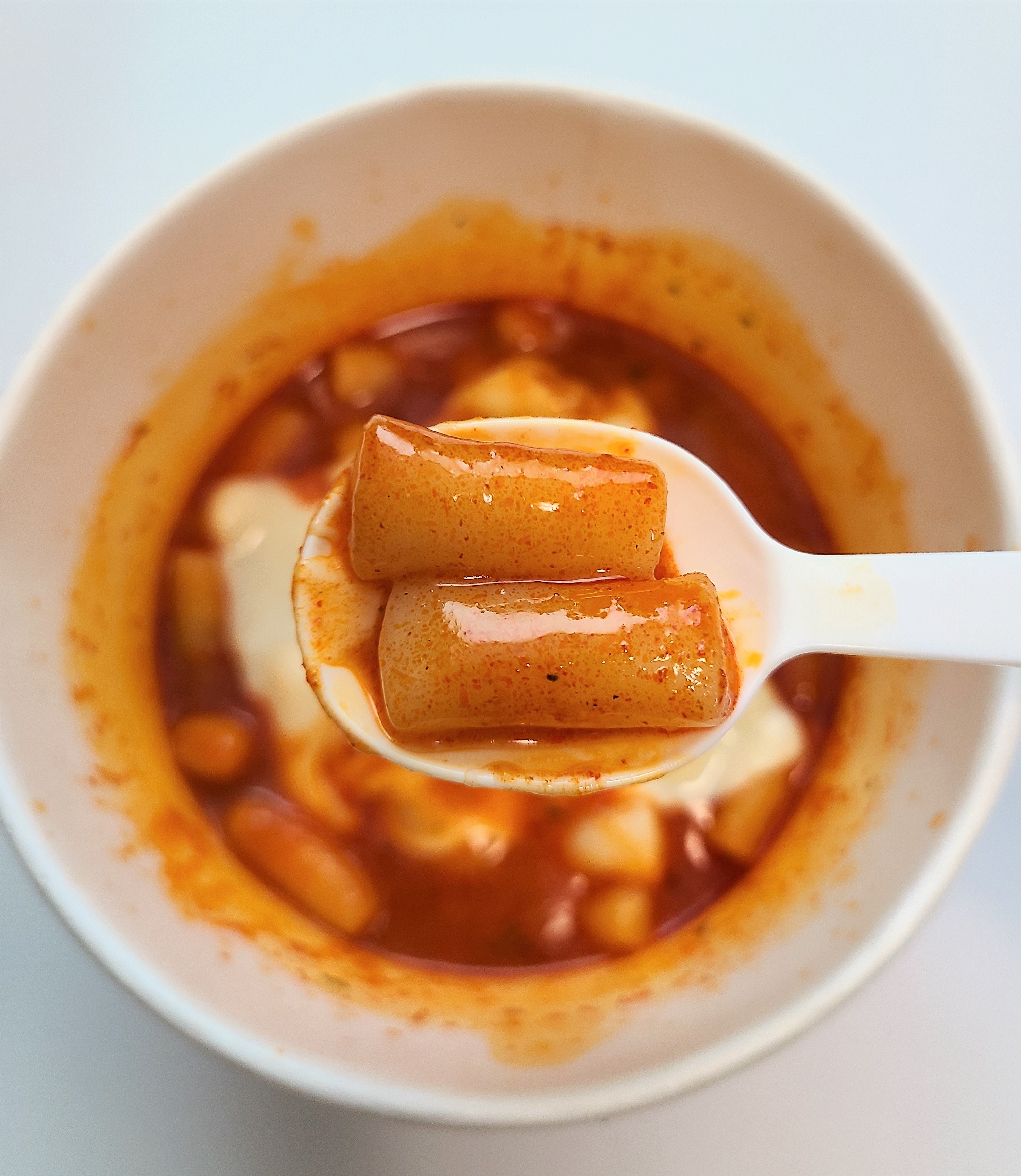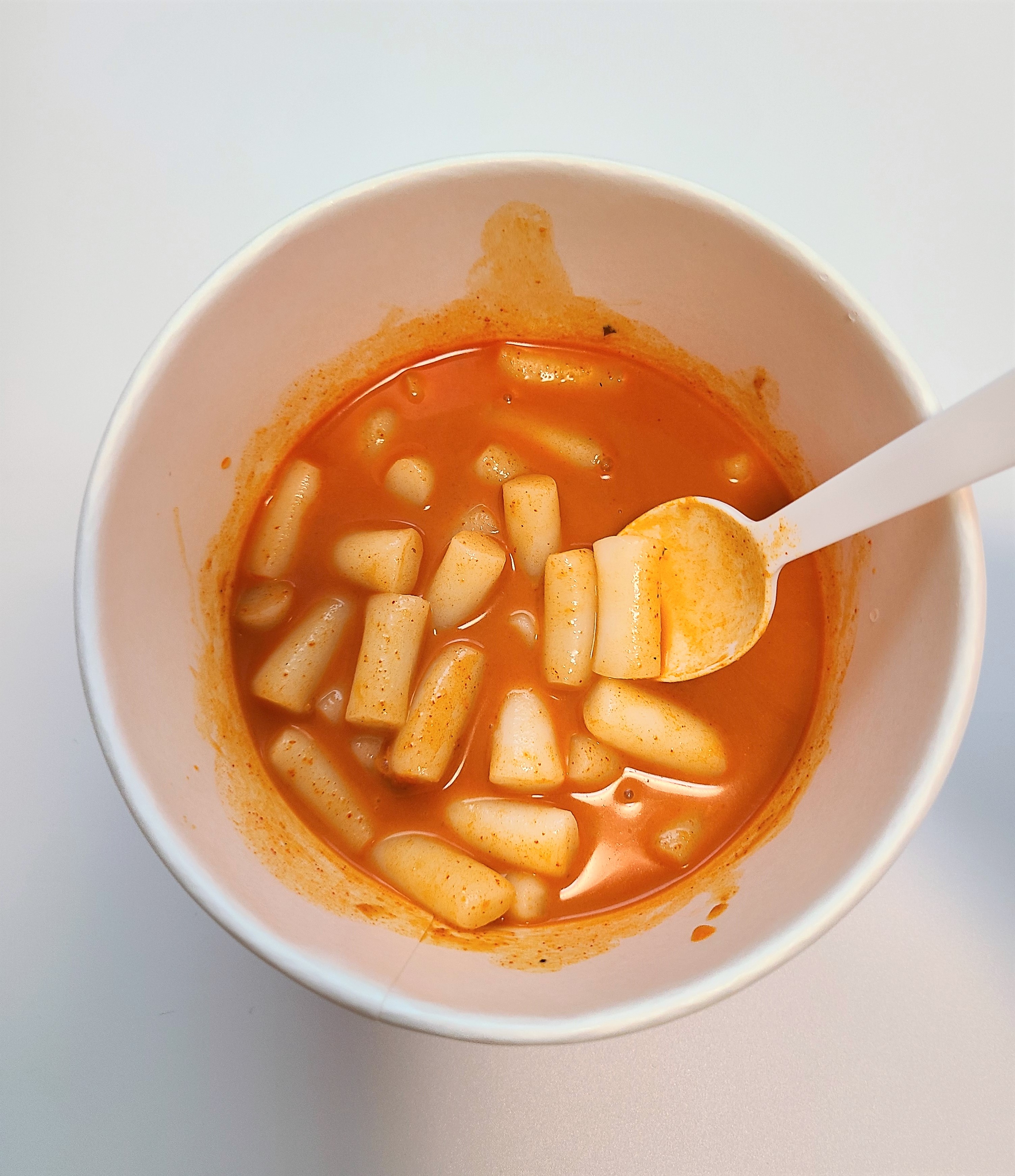 시켜먹는 배달 떡볶이보다는 구성이 좀 아쉬울 수 있어요. 아무래도 전자레인지에 돌려먹는 컵 떡볶이라 그런 거 같습니다. 씹는 식감이 더 있었으면 좋았을 텐데..ㅎㅎ