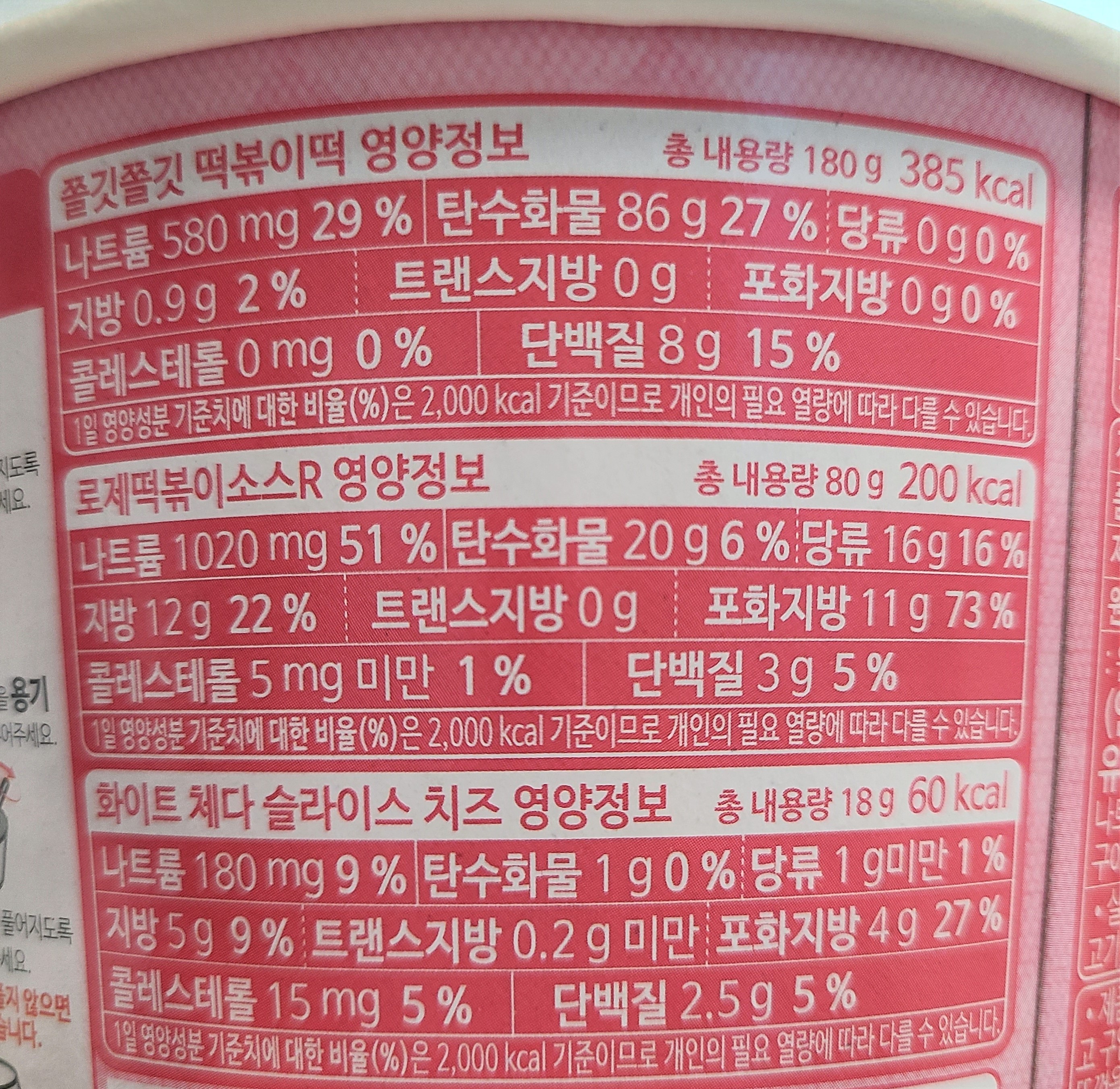 떡볶이 종류는 아무리 양이 작아 보여도 칼로리가 기본 500 정도는 하는 것 같아요.. 이 제품은 600이 넘어가네요ㅎㅎ 배달음식은 이것보다 더더더 높겠죠?