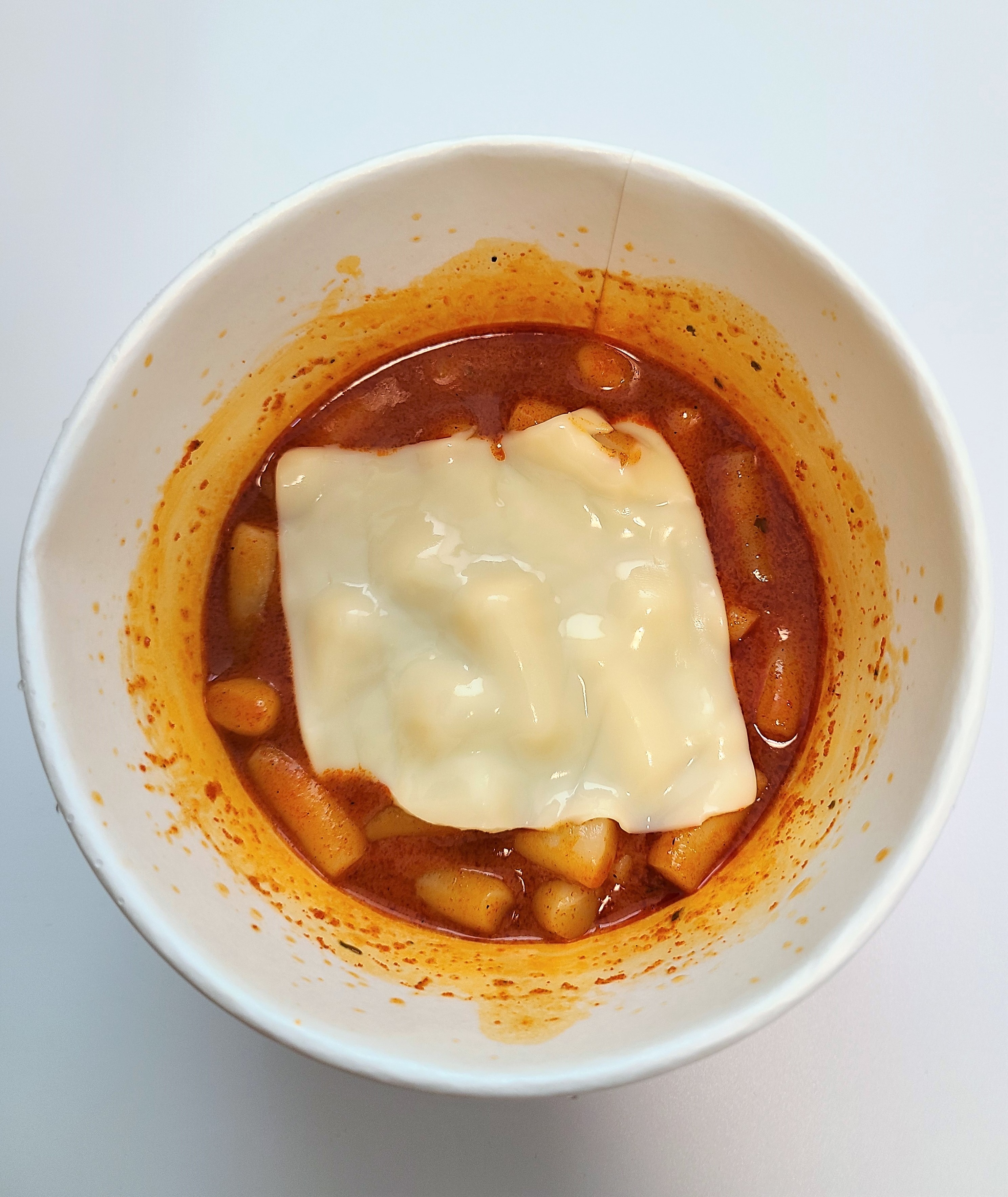 다른 편의점 컵떡볶이에 비해 물이 조금 들어가는 편이에요. 첨에 멋모르고 물을 너무 많이 넣어서 한강물 됐었네요..