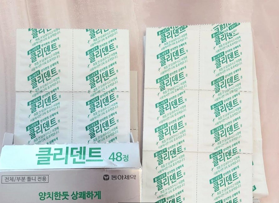 칫솔질 백 번 하는 것보다 틀니 세정제로 세척 한 번 해주면 새 것처럼 깔끔해집니다