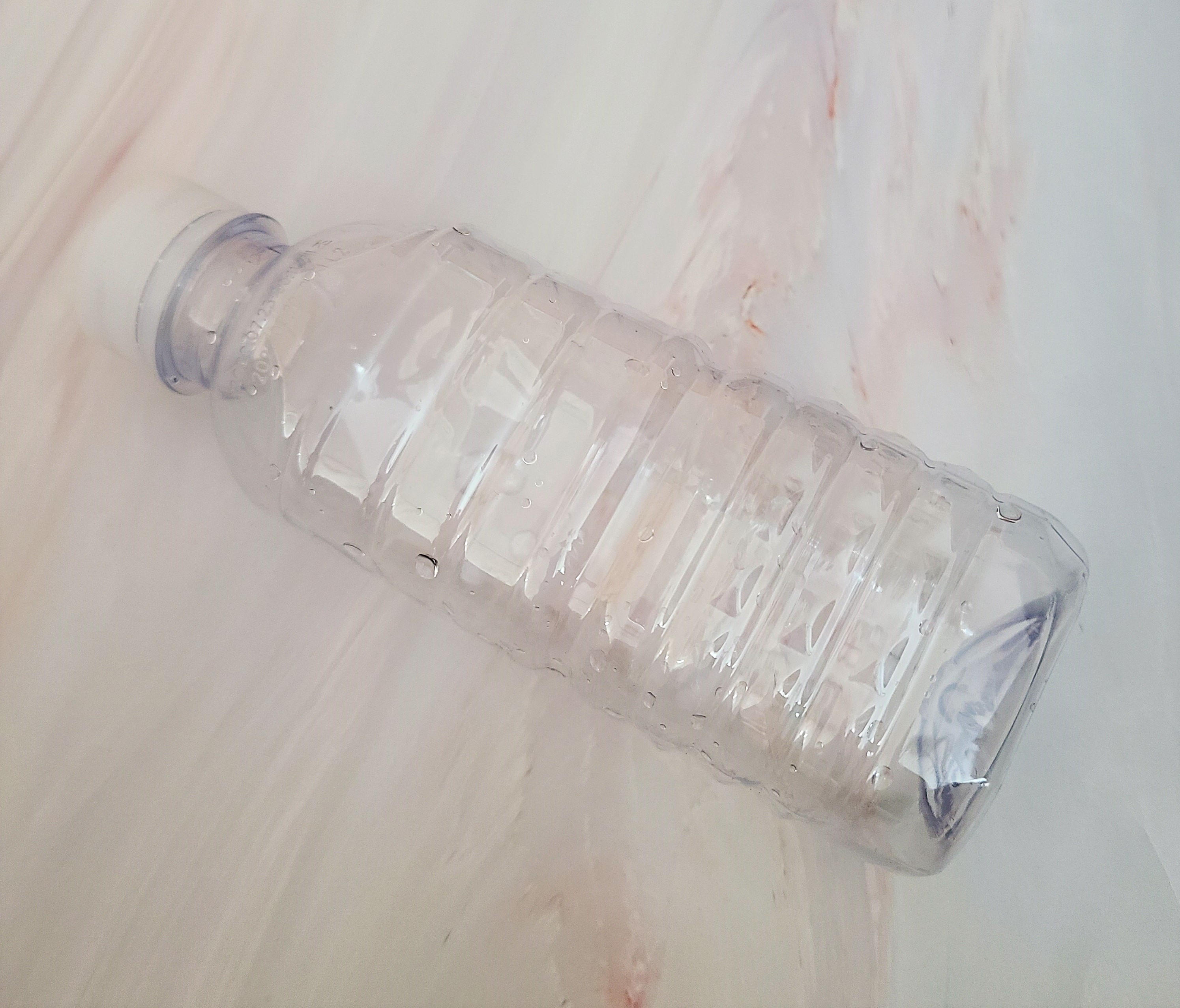 3. 페트병을 찌그러 뜨려줍니다.